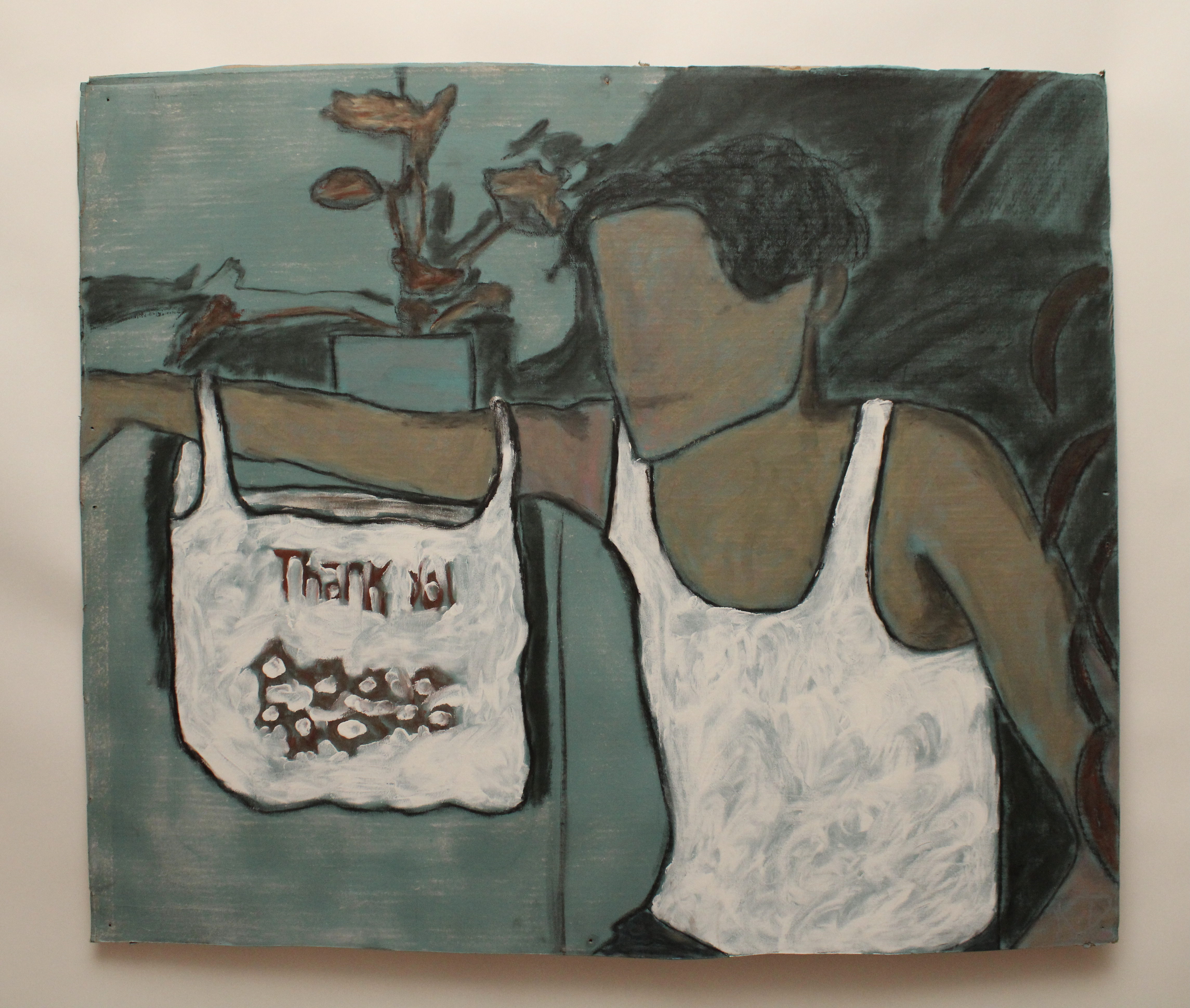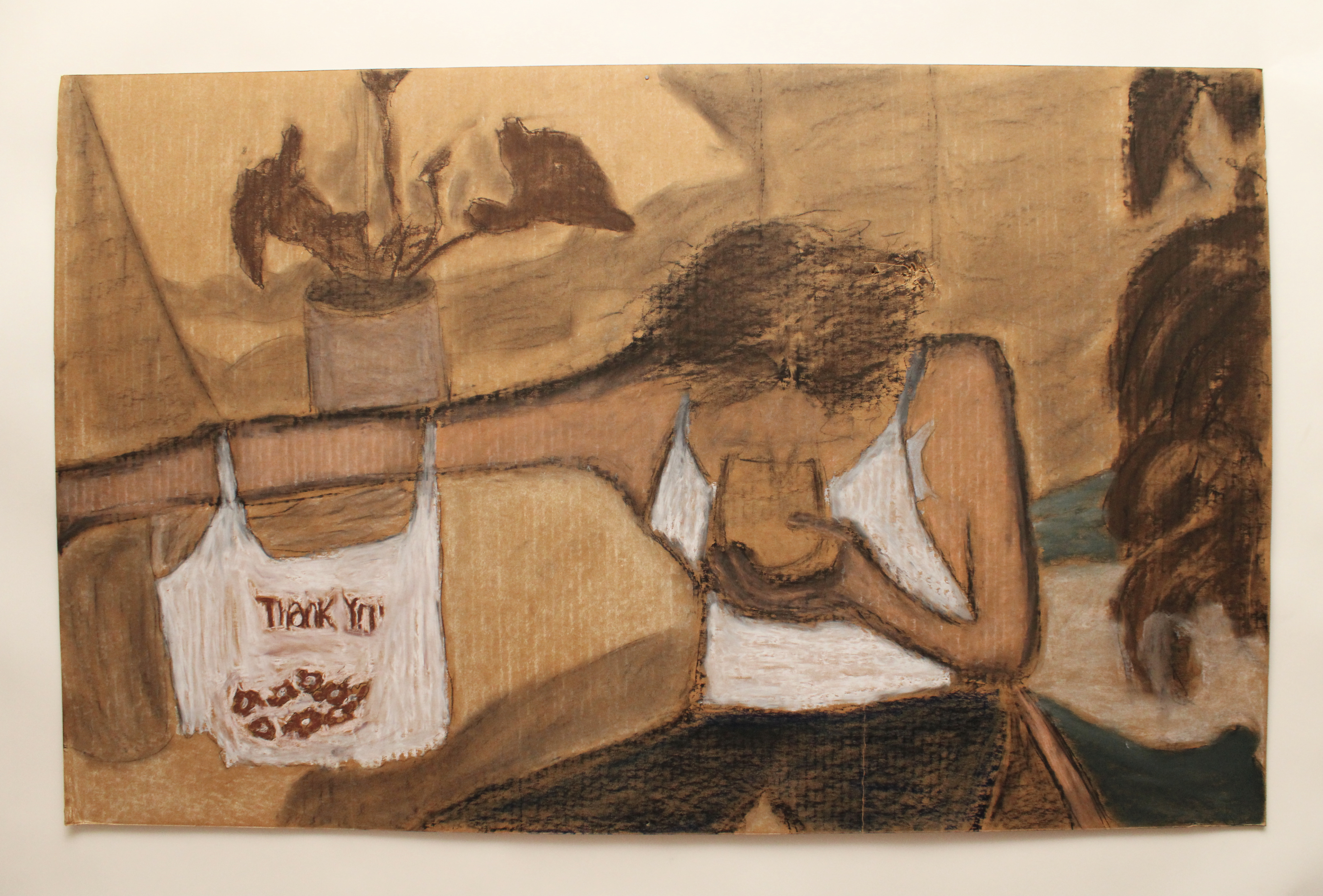 Thank You thank you one (2019) // acrylic, oil and pastel on cardboard // 34″ x 28″ thank you two (2019) // oil, pastel and charcoal on cardboard // 48″ x 36″ somm (2019) // acrylic and pastel on foam board // 48″ x 36″ 🔑 food (2019) // acrylic, oil and pastel on cardboard // 34″ x 28″ u and I (2019) // charcoal and pastel on cardboard // 48″ x 36″ nakey (2019) // acrylic and pastel on foam board // 36″ x 24″ bag two (2019) // acrylic and pastel on canvas // 24″ x 24″ bag (2020) // acrylic and pastel on paper // 36″ x 36″ Share this: Share on X (Opens in new window) X Share on Facebook (Opens in new window) Facebook Like Loading...